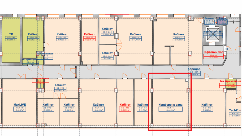 В довгострокову оренду пропонується офісне приміщення №114 на 1-му поверсі в БЦ Кронос, біля м. Дорогожичі. За адресою вулиця Ґарета Джонса, 15. Загальна площа: 53,09 м²