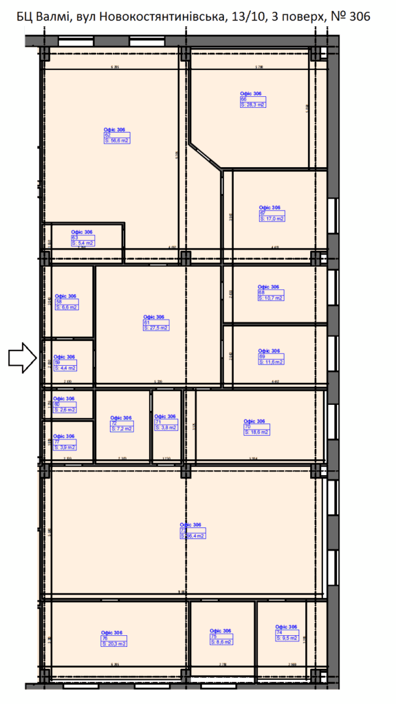 В довгострокову оренду пропонується просторий офіс з кабінетною системою, № 306, який знаходиться на 3 поверсі із зручним плануванням. Загальна площа - 370,8 м.кв.