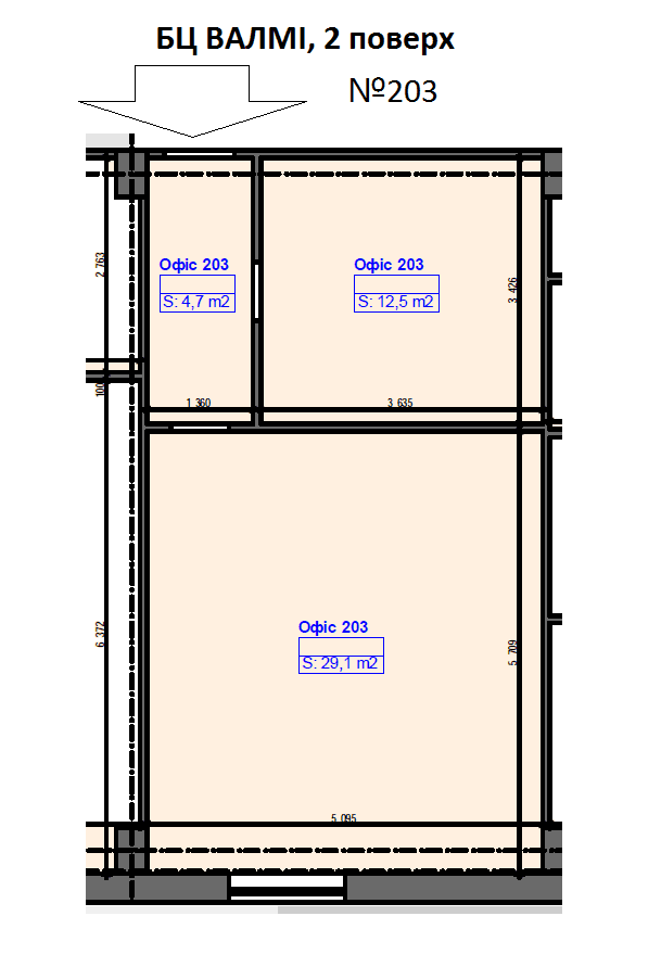 Пропонується в оренду офіс № 203 на другому поверсі в БЦ Валмі. Він розташований у Подільському районі Києва за адресою вул. Новокостянтинівська 13/10, 5 хвилин на авто, від м. Почайна. Площа приміщення 55,56 м.кв, з урахуванням коефіцієнту площ загального користування.